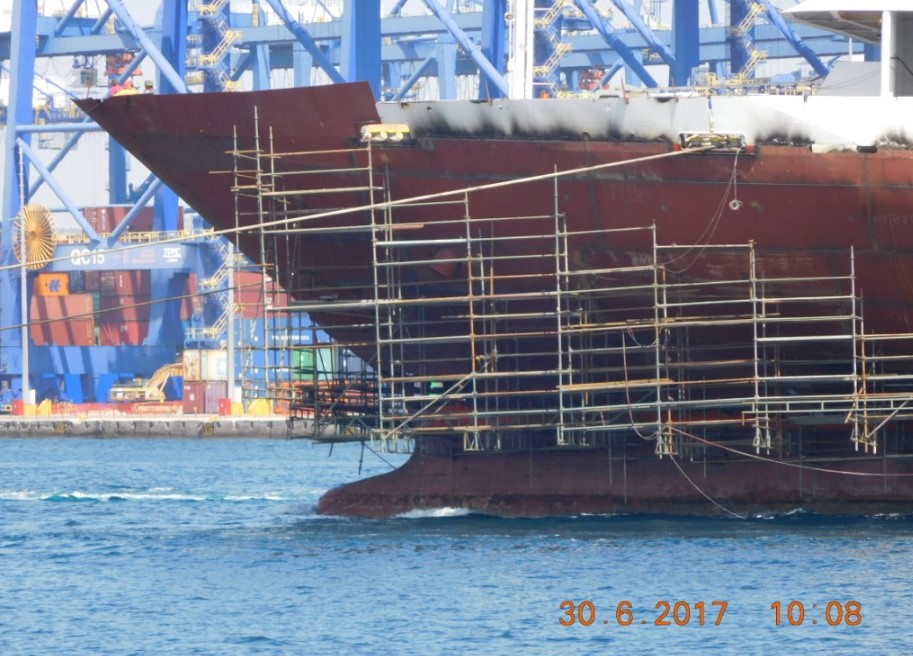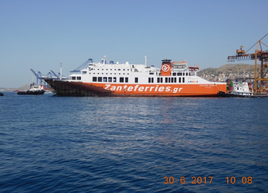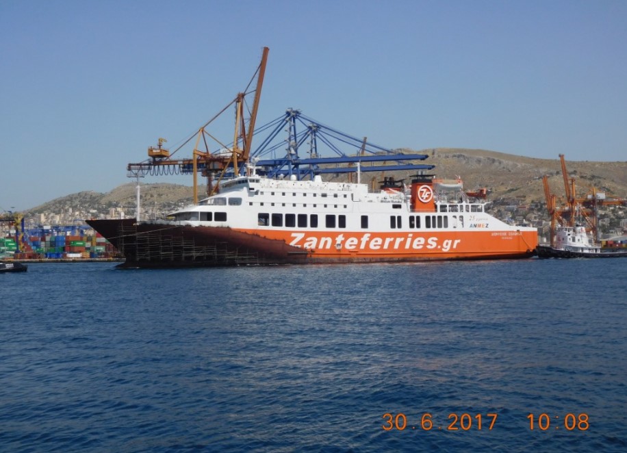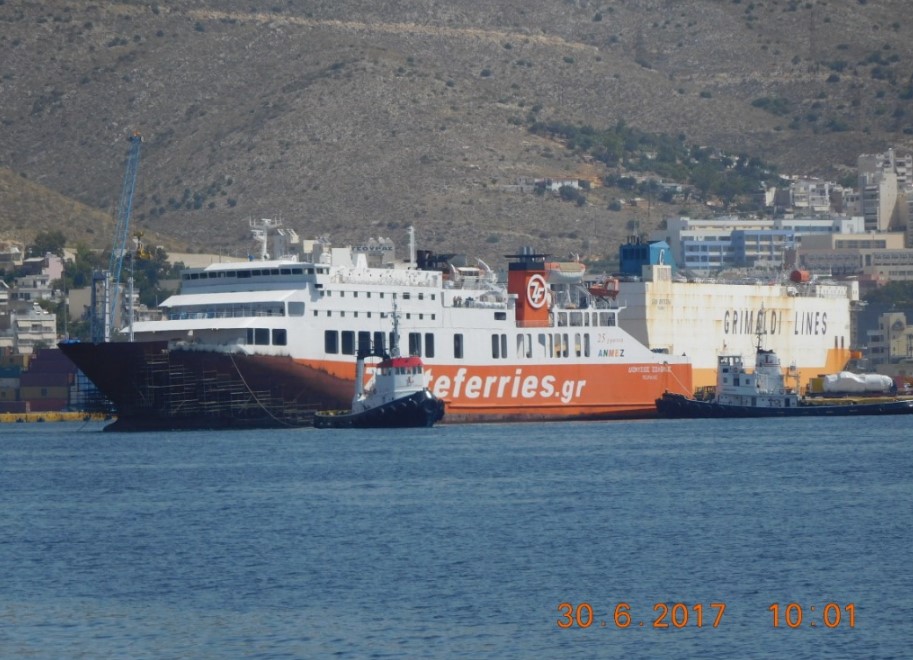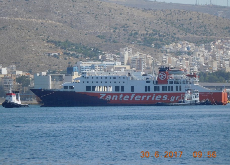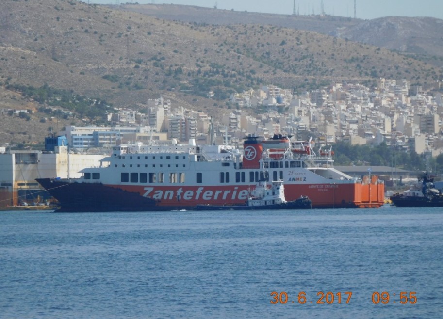 Το πλοίο έφυγε σήμερα από το Κερατσίνι, ρυμουλκούμενο, για την μεγάλη πλωτή δεξαμενή του Περάματος, όπου και ήδη έχει δεξαμενιστεί, προκειμένου να γίνουν οι απαιτούμενες επιθεωρήσεις.